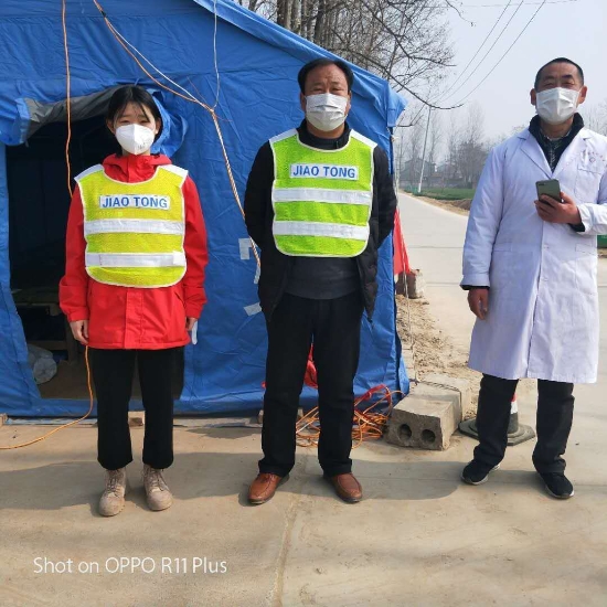 3月9日,春雨淅瀝,劉志杰仍在村口卡點(diǎn)冒雨堅(jiān)守崗位。女兒劉苗苗此時(shí)正在村里登記排查,為村民測試體溫,父女倆一個(gè)內(nèi)防疫情輸入,一個(gè)外防疫情擴(kuò)散,點(diǎn)上嚴(yán)管,面上嚴(yán)查,這感人一幕,將會深深印刻在任莊行政村村民們的腦海中!