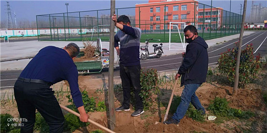 在學(xué)校老師的努力下,在蔣莊村干部群眾支持下,經(jīng)過10多天的辛勤勞動,蔣莊小學(xué)今年新栽植綠化樹、花木5000多棵(株),本來綠色盎然的校園又添新綠。
