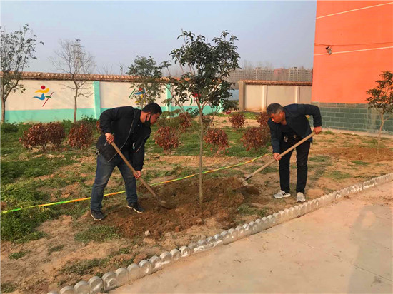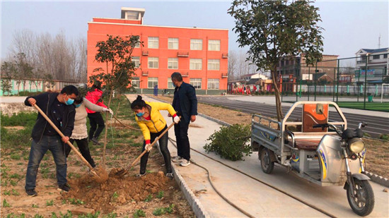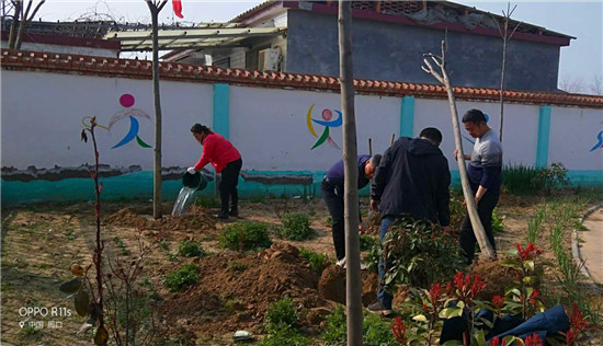 陽春三月,春風(fēng)吹綠了枝芽,吹綠了草地,櫻桃花、梨花爭相開放。植樹節(jié)前夕,西華縣蔣莊小學(xué)組織老師一邊戰(zhàn)疫情,一邊開展植樹造林活動,堅持在疫情中為校園再添新綠。