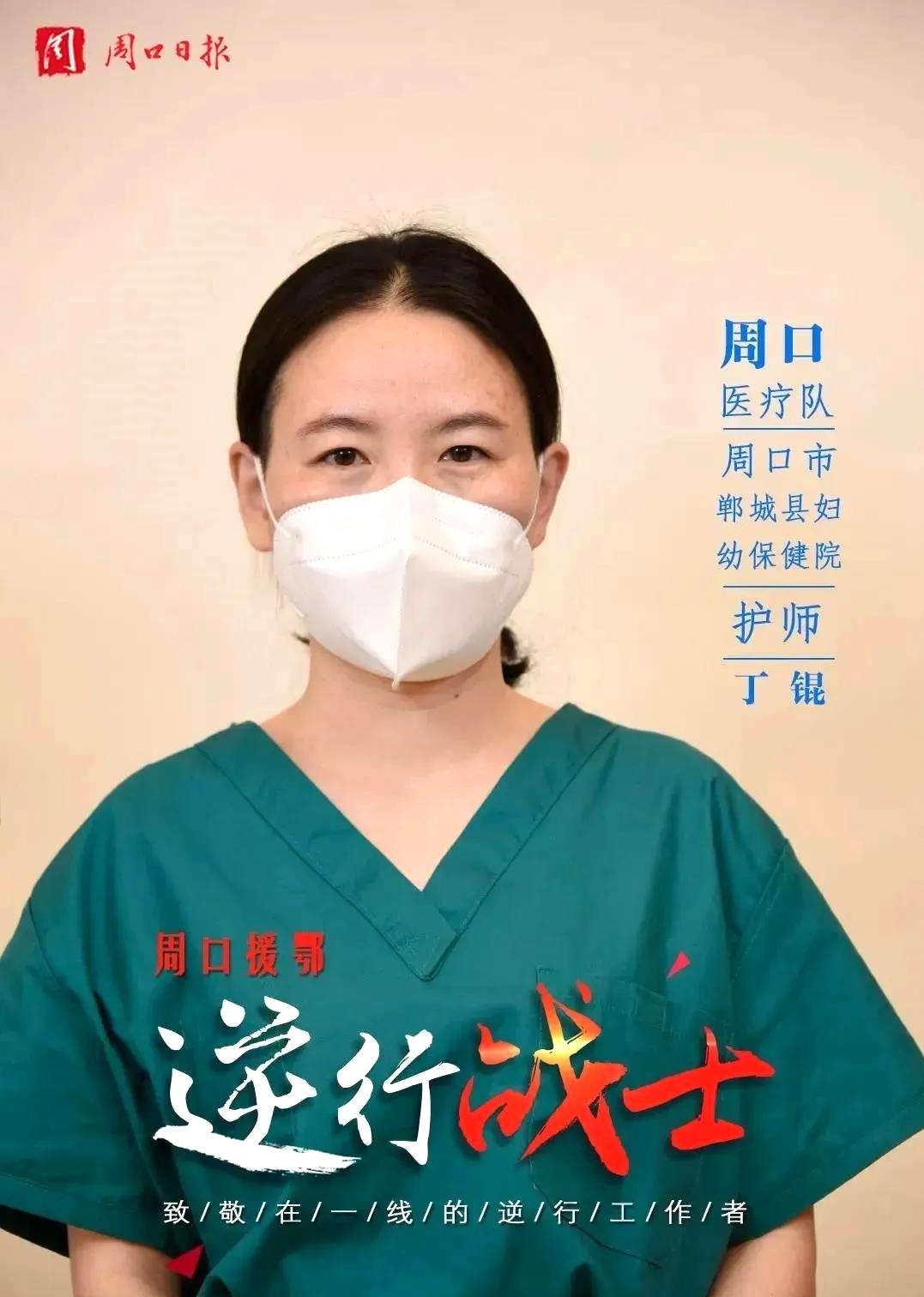 今年27歲的丁錕來自鄲城縣婦幼保健院重癥監(jiān)護室,她臨床經(jīng)驗豐富,具有扎實的危重患者救治護理能力。在接到醫(yī)院支援武漢的通知后,第一時間向醫(yī)院遞交了請戰(zhàn)書,主動請纓支援武漢疫情前線。她奔赴武漢時,1歲多的孩子還沒斷奶,她不但經(jīng)受著自己生理的痛苦,還經(jīng)受著孩子斷奶的精神打擊,以國家為重,毅然前行。正詮釋了她以“位卑未敢忘憂國”為格言而落實到具體的行動上。