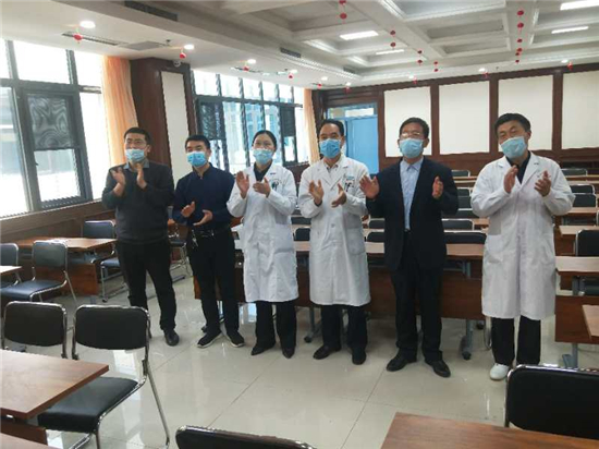 看到屏幕上的援鄂醫(yī)療隊員們,港區(qū)醫(yī)院董事長孫繼祥顯得有些激動,他首先向王記表達了生日祝福。接著,孫繼祥對醫(yī)療隊員們說:“這次你們8位去武漢抗疫,很辛苦,為治愈當?shù)氐牟∪烁冻隽撕芏嗪顾团?,也充分體現(xiàn)了優(yōu)秀共產(chǎn)黨員的先進性。在這里,我也代表醫(yī)院向你們致以崇高的敬意和感謝。到今天,你們在武漢已經(jīng)抗疫19天了,我們和你們的家人都無比想念你們,希望你們在那里繼續(xù)做好防護、注意安全,我們企盼著疫情早日結(jié)束,你們早日凱旋歸來?!?/p>
