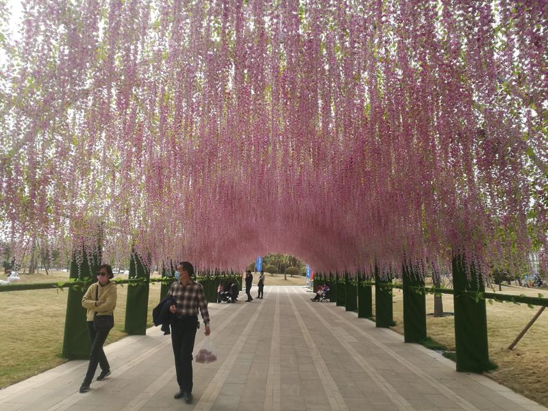 受疫情影響,清明小長假,不少市民放棄了出行計(jì)劃。周口本地的游園、景點(diǎn)因此很是“火了”一把。近年來,周口城市建設(shè)日新月異,踏青賞花,在家門口就能滿足了。圖為周口某綠色基地節(jié)日?qǐng)鼍啊?記者 李偉 攝