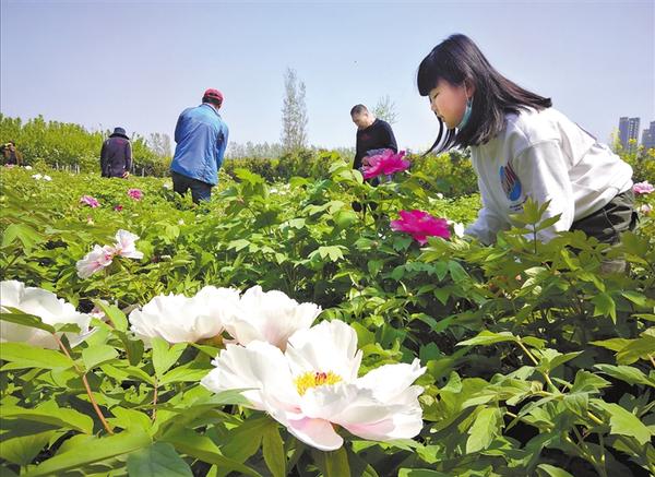 圖二 4月7日,在周口經(jīng)濟(jì)開發(fā)區(qū)淮河路辦事處小牛莊的一個花圃內(nèi),千余株牡丹相繼吐蕊,吸引不少市民前來賞花。近年來,我市不斷對中心城區(qū)進(jìn)行改建,著力提升城市的園林綠化水平,切實激發(fā)了城區(qū)周邊農(nóng)民種植花卉、草木的熱情。 記者 孫安平 攝