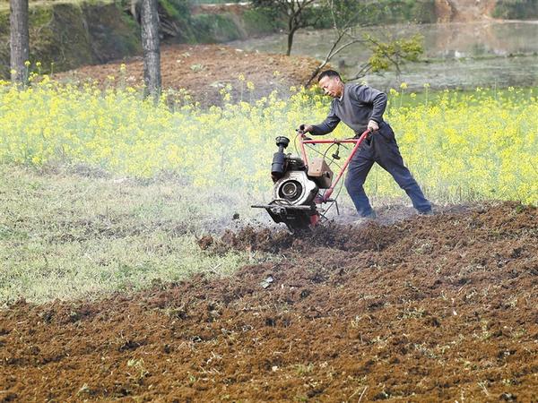 圖三 昨日,沈丘縣卞路口鄉(xiāng)一農(nóng)民正在用小型農(nóng)機(jī)犁地。連日來,氣溫不斷回升,當(dāng)?shù)剞r(nóng)民搶抓有利時機(jī),進(jìn)行犁地、澆水、除草等春季管理,田間地頭一派忙碌景象。 黃海濤 攝