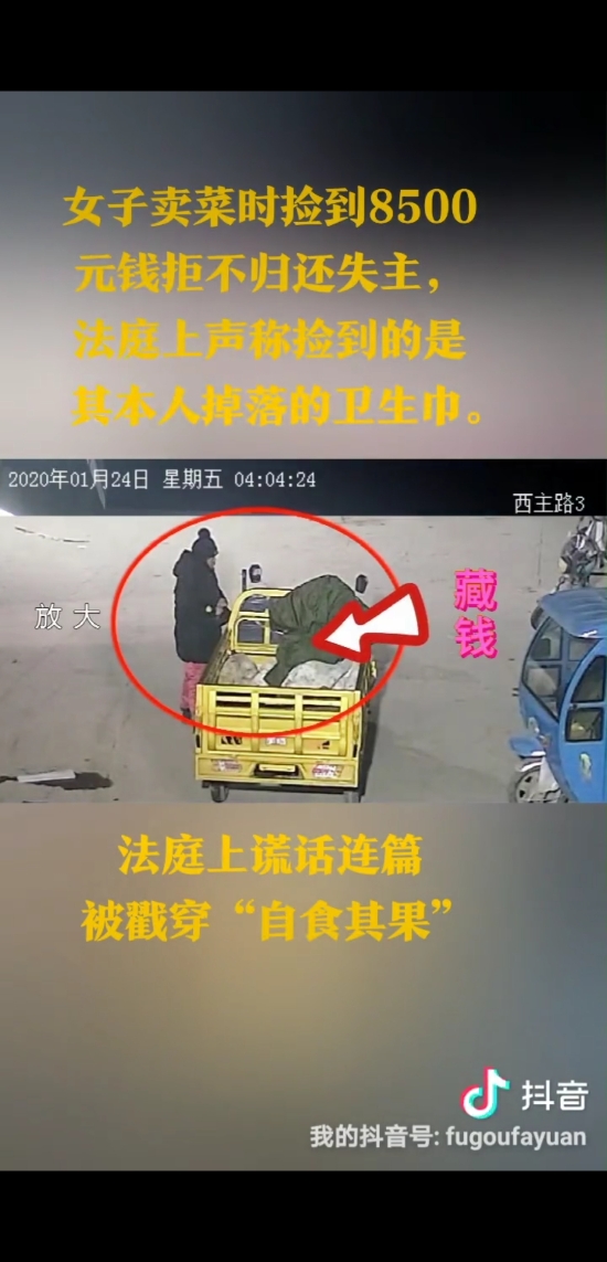 面對證據(jù),楊某見難以掩蓋事實(shí),隨即改口稱是撿到錢了,但只撿到1000元錢。法官將監(jiān)控錄像放大,告知楊某1000元錢的厚度和其撿到的包裹大小明顯不符,希望其如實(shí)陳述。楊某見再也無法抵賴,最終承認(rèn)其撿到8500元錢款的事實(shí)。在法官的當(dāng)庭教育引導(dǎo)下,楊某表示認(rèn)識到了自己的錯誤,向原告陳某賠禮道歉,并將撿到的8500元錢款和本案訴訟費(fèi)等各項(xiàng)費(fèi)用共10000元交付陳某。