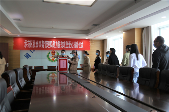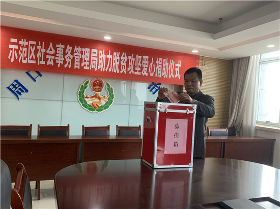 為了助力脫貧攻堅(jiān)工作,4月14日下午,市城鄉(xiāng)一體化示范區(qū)社會(huì)事務(wù)管理局自發(fā)組織,舉行愛心捐贈(zèng)活動(dòng)。該局局長(zhǎng)朱放哲及全體工作人員為該區(qū)雙閣行政村捐款4000余元。