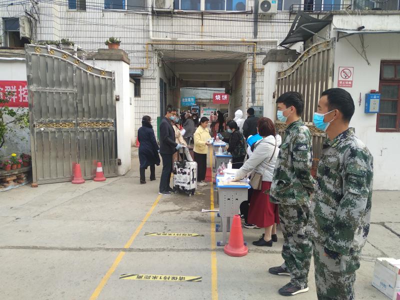 “同學(xué)們,請排好隊,與前面的人保持1米以上的距離?!?月20日上午,在鄲城縣華宇中學(xué),來自洺南街道基干民兵應(yīng)急分隊的民兵們正在現(xiàn)場維護秩序,幫助該校做好九年級學(xué)生復(fù)學(xué)入校防疫工作。