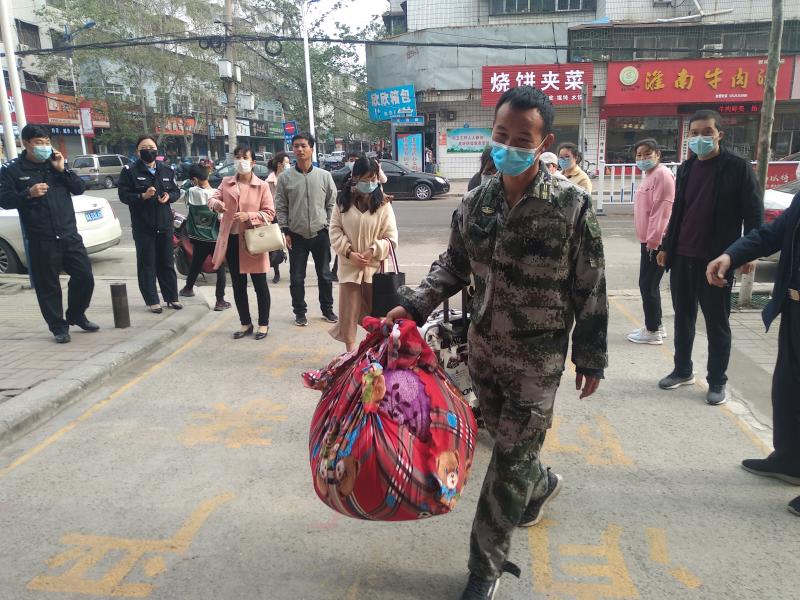 行動中,基干民兵按照應(yīng)急預(yù)案要求,全部提前到崗到位,在學(xué)校大門前及周邊路口巡邏執(zhí)勤,指揮疏導(dǎo)車輛有序通行,避免交通堵塞,造成人員聚焦;積極協(xié)助學(xué)校進行體溫檢測、物品消毒、人員登記等工作;引導(dǎo)學(xué)校門口家長、學(xué)生不聚集、不扎堆,保障師生安全有序入校。為避免人群過度密集,學(xué)生家長一律禁止進入校園,而學(xué)生開學(xué)時攜帶的行李物品較多,基干民兵們主動當(dāng)起了“搬運工”,幫助學(xué)生們扛運大包小包的書籍、被褥和行李,熱情的服務(wù)受到很多學(xué)生的點贊。