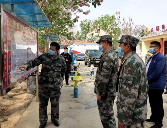 4月21日上午,老子故里春風(fēng)和煦,白楊寺村綠意盎然。在脫貧攻堅決戰(zhàn)決勝的關(guān)鍵時期,周口軍分區(qū)副司令員薛振喜到鹿邑縣張店鎮(zhèn)白楊寺村檢查指導(dǎo)縣人武部定點(diǎn)幫扶的脫貧工作??h委常委、縣人武部政委杜寶森,縣委常委、縣政府黨組成員張國慶,縣委黨校黨委書記、常務(wù)副校長鄭峰陪同檢查。
