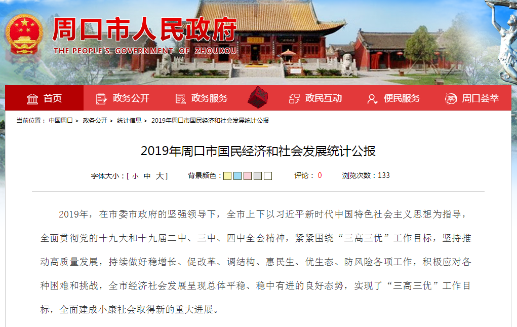 《2019年周口市國民經(jīng)濟和社會發(fā)展統(tǒng)計公報》,