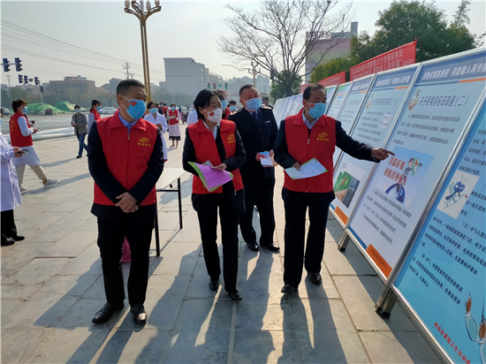 4月26日是我國第十三個(gè)“全國瘧疾日”。 今年的宣傳主題是“消除瘧疾控新冠,同防輸入再傳播”。4月24日,鄲城縣疾控中心在世紀(jì)廣場(chǎng)開展了瘧疾防治系列宣傳活動(dòng)??h人大常委會(huì)副主任張愛聯(lián)、縣衛(wèi)健委主任付登霄在縣疾控中心主任張吉志陪同下參觀了宣傳活動(dòng)。