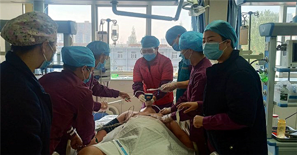 急救迅速展開。6時(shí)13分,急救車到達(dá)醫(yī)院急救中心。救援現(xiàn)場,有著豐富急救經(jīng)驗(yàn)的董建洲醫(yī)生判斷患者為重度有機(jī)磷農(nóng)藥中毒且伴有呼吸衰竭癥狀。經(jīng)過一個(gè)多小時(shí)搶救,患者血壓出現(xiàn)平穩(wěn),但呼吸仍然困難,隨時(shí)有生命危險(xiǎn)。