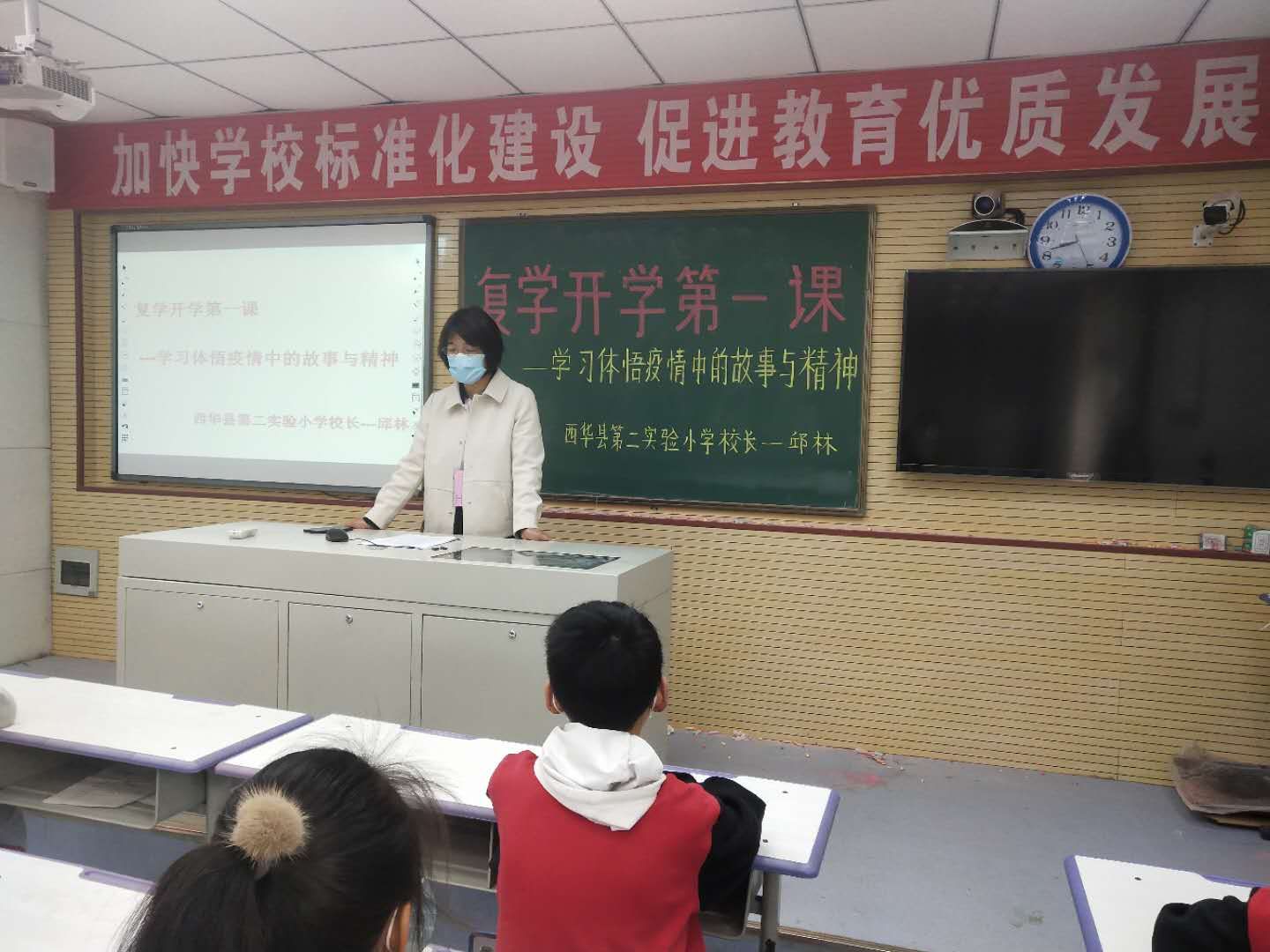 4月27日,根據(jù)防控疫情形勢好轉(zhuǎn),按照上級有關(guān)部門要求,西華縣第二實(shí)驗(yàn)小學(xué)做好了各項(xiàng)安全準(zhǔn)備工作,四、五、六年級返校復(fù)學(xué)。開學(xué)的第一課的主題為“生命可貴,安全第一”。