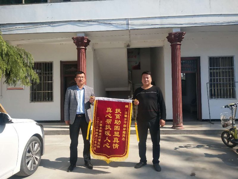 “扶貧助困顯真情,真心幫扶暖人心!”4月26日,太康縣王集鄉(xiāng)前進(jìn)村未脫貧戶董紅偉將這面錦旗送到幫扶人李超手中?!八蜕线@面錦旗,終于了卻了我的一個(gè)心愿,真是非常感謝李超同志,不辭勞苦,多次到我家進(jìn)行幫扶,這不,又幫我介紹了一份工作,今年我脫貧沒(méi)任何問(wèn)題了!”董紅偉笑著說(shuō)。