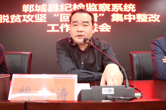 5月5日上午,鄲城縣紀(jì)委監(jiān)委召開全縣紀(jì)檢監(jiān)察系統(tǒng)脫貧攻堅“回頭看”集中整改工作推進會??h委常委、縣紀(jì)委書記、監(jiān)委主任胡友濤出席會議。
