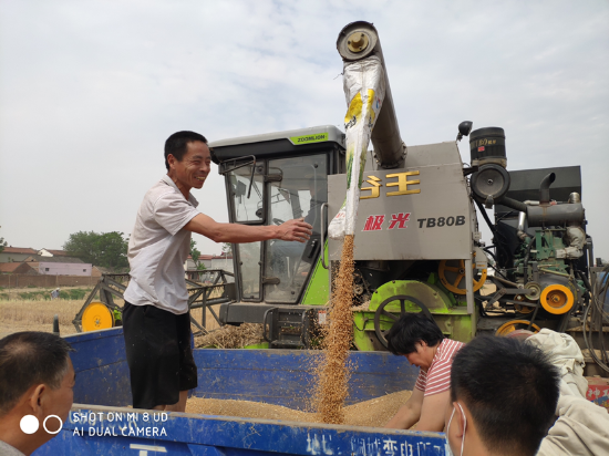 近日,我市小麥相繼進入成熟期,田地里遍野金黃,滾滾麥浪中收割機來回穿梭,演奏出一首豐收的歡歌。24日上午,沈丘縣李老莊鄉(xiāng)部分麥田開始收割,飽滿的麥子從收割機中排出,農(nóng)民的臉上綻放著豐收的喜悅。據(jù)介紹,隨著我市小麥逐漸成熟,小麥大面積收割將很快到來。 朱東一 攝