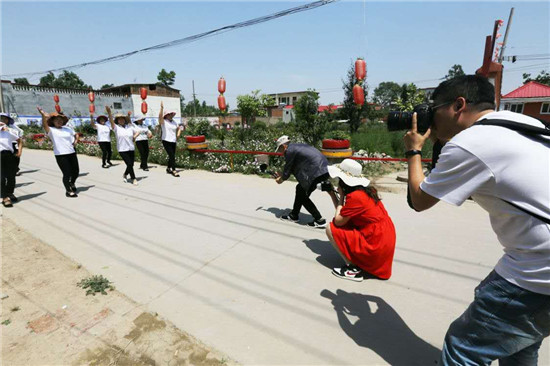 采風(fēng)期間,10多名專業(yè)攝影師奔赴奉母鎮(zhèn)前邵村、前于王村以及孝賢碑林等地,進行實地探訪采風(fēng)。前邵村是當(dāng)?shù)赜忻膫鹘y(tǒng)村落,村里文化氛圍濃厚,先后走出10多位戲曲方面的國家一級演員。在該村,一支業(yè)余的文藝宣傳隊引起攝影家們關(guān)注的目光。大家即興表演了兩三個節(jié)目,引得攝影家們極大興趣,不停按下快門拍攝。