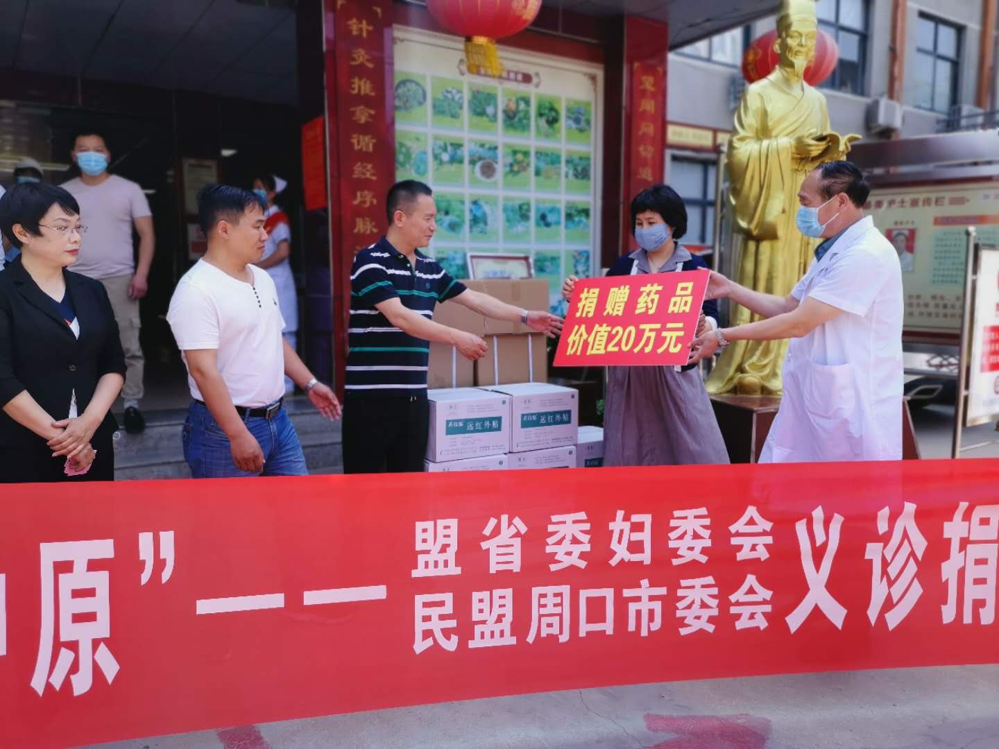 在義診活動(dòng)現(xiàn)場(chǎng),周口市買氏中醫(yī)文化研究會(huì)聯(lián)合河南省中醫(yī)藥研究院,為川匯區(qū)中醫(yī)院周邊社區(qū)群眾捐贈(zèng)價(jià)值20萬(wàn)元治療頸肩腰腿痛和乳腺疾病的藥物。