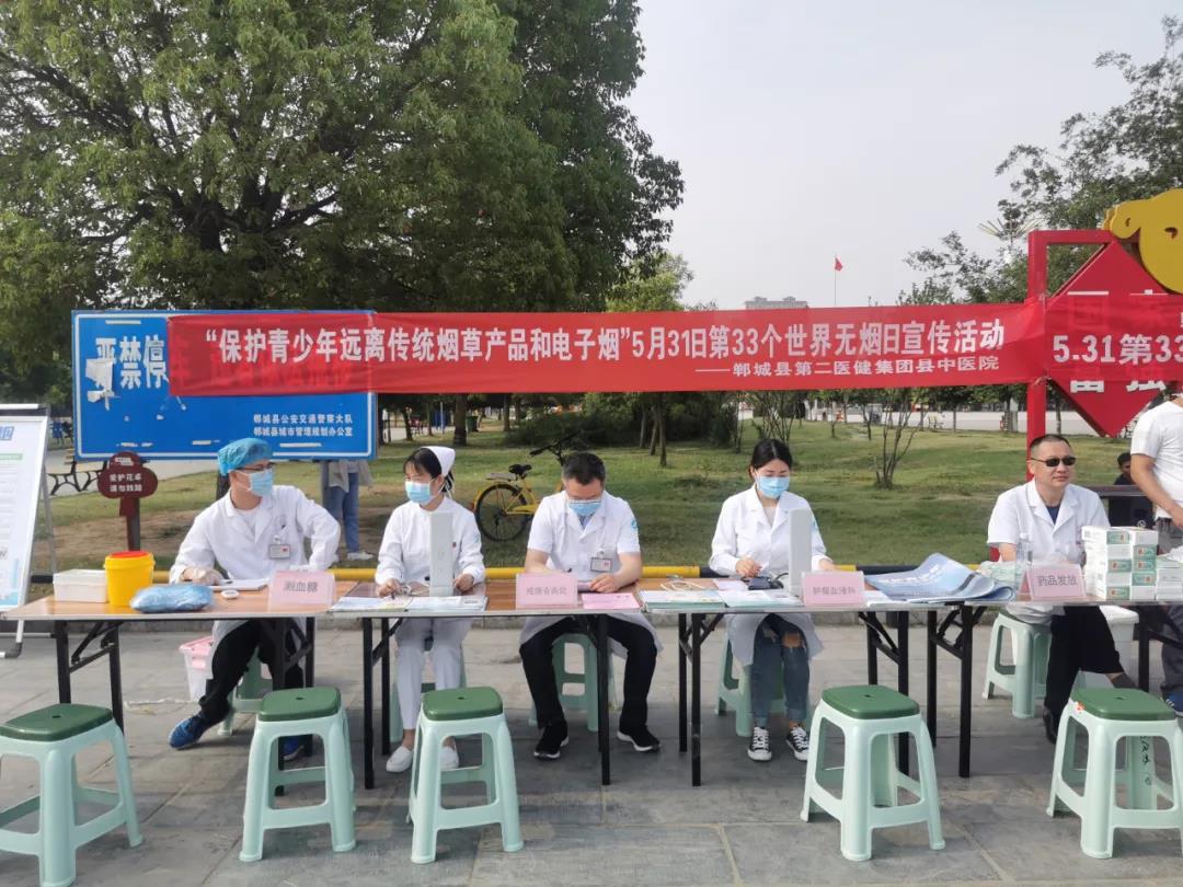 今年5月31日是第33個世界無煙日,本次主題是“保護青少年遠離傳統(tǒng)煙草產品和電子煙”。5月30日上午,鄲城縣第二醫(yī)療健康服務集團縣中醫(yī)院在世紀廣場開展了義診宣傳活動,進一步加強煙草危害和控煙政策宣傳,科學引導青少年樹立拒絕傳統(tǒng)煙草產品和電子煙的健康理念,遠離煙草危害,保護青少年身心健康。