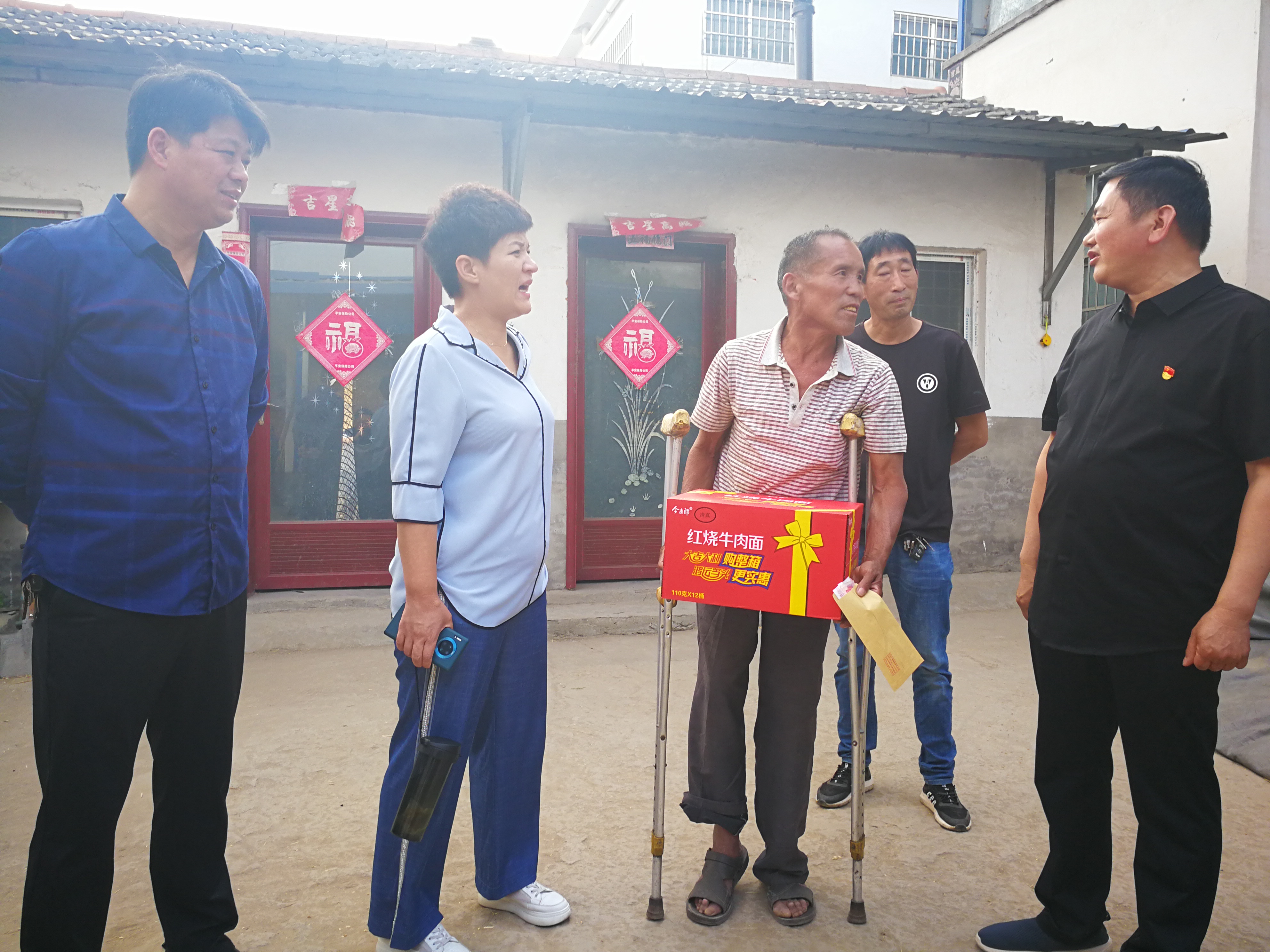 5月31日,正值麥?zhǔn)沾竺r(shí)節(jié),沈丘縣農(nóng)業(yè)農(nóng)村局領(lǐng)導(dǎo)班子帶領(lǐng)局機(jī)關(guān)駐村幫扶工作隊(duì)和卞路口鄉(xiāng)黨委書(shū)記牛曉靖、鄉(xiāng)長(zhǎng)趙斌等一行5人,帶著黨的溫暖和幫扶干部的濃濃真情,前往卞路口鄉(xiāng)前營(yíng)子村,走訪慰問(wèn)貧困戶。