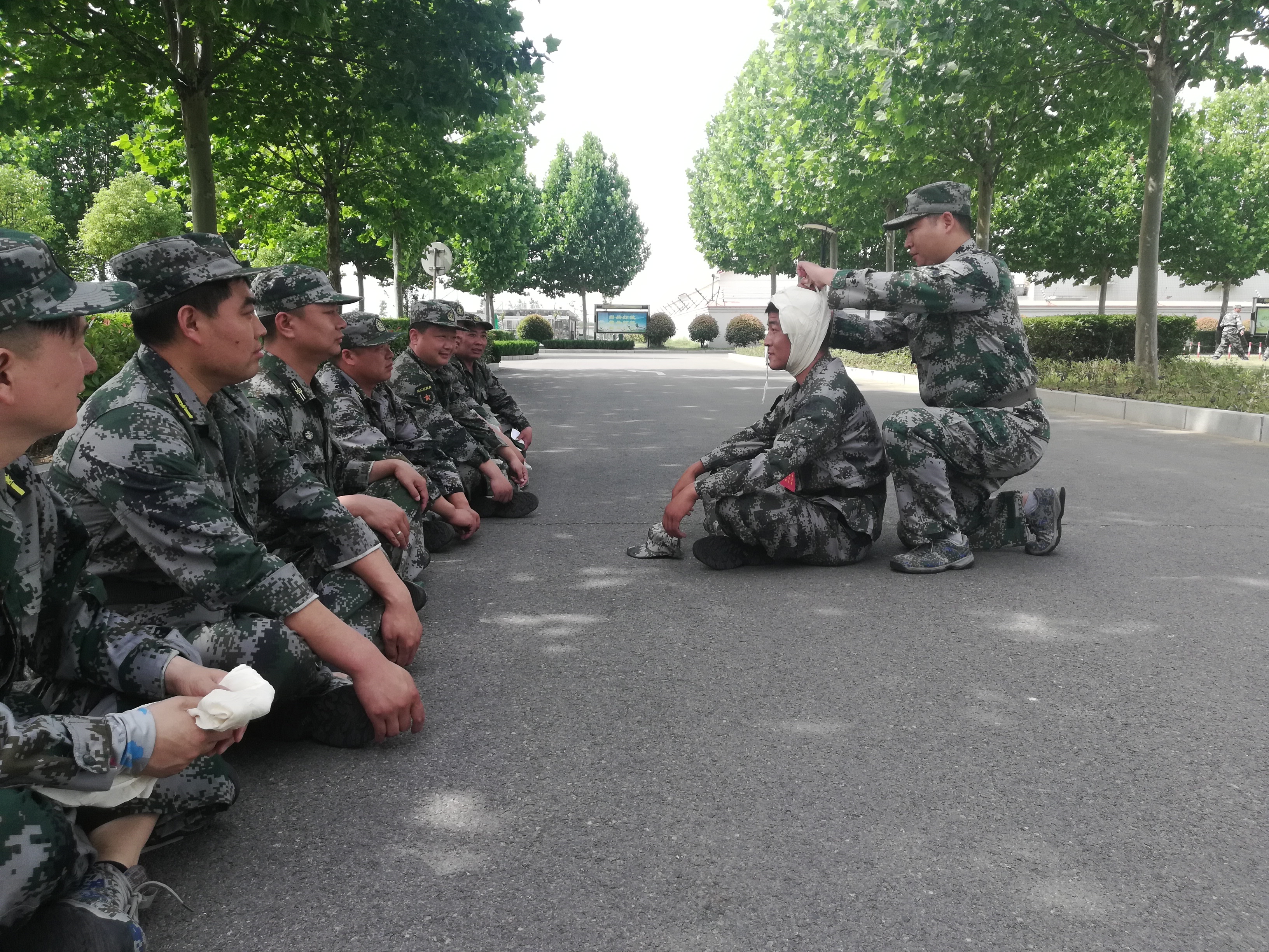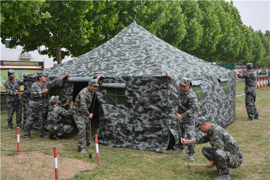 在這些民兵當(dāng)中,擔(dān)負(fù)醫(yī)療救護(hù)的綜合勤務(wù)排更是不簡單。他們是來自周口長城醫(yī)院的醫(yī)護(hù)人員,在今年的抗疫戰(zhàn)中,他們充分發(fā)揮基層黨員民兵作用,無論白天黑夜,冒著雨雪嚴(yán)寒,在抗疫一線的卡點(diǎn)上都留下了他們迷彩身影。趙軍濤是來該醫(yī)院的醫(yī)護(hù)人員,同時(shí)也是一名退伍老兵,他說,新時(shí)代的強(qiáng)軍戰(zhàn)歌已經(jīng)奏響,要以此次集訓(xùn)為契機(jī),不斷強(qiáng)化練兵備戰(zhàn)的緊迫意識(shí)、危機(jī)意識(shí),以飽滿的政治熱情投入到緊張的訓(xùn)練中,用優(yōu)異成績?yōu)榇▍R區(qū)的后備力量建設(shè)增光添彩。