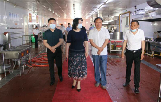 王桂榮一行深入睢縣回族高級(jí)中學(xué)食堂、德莊火鍋現(xiàn)場(chǎng)觀摩餐飲單位質(zhì)量提升工程、觀看完善的各項(xiàng)工作記錄和6S管理流程、并不時(shí)交流。