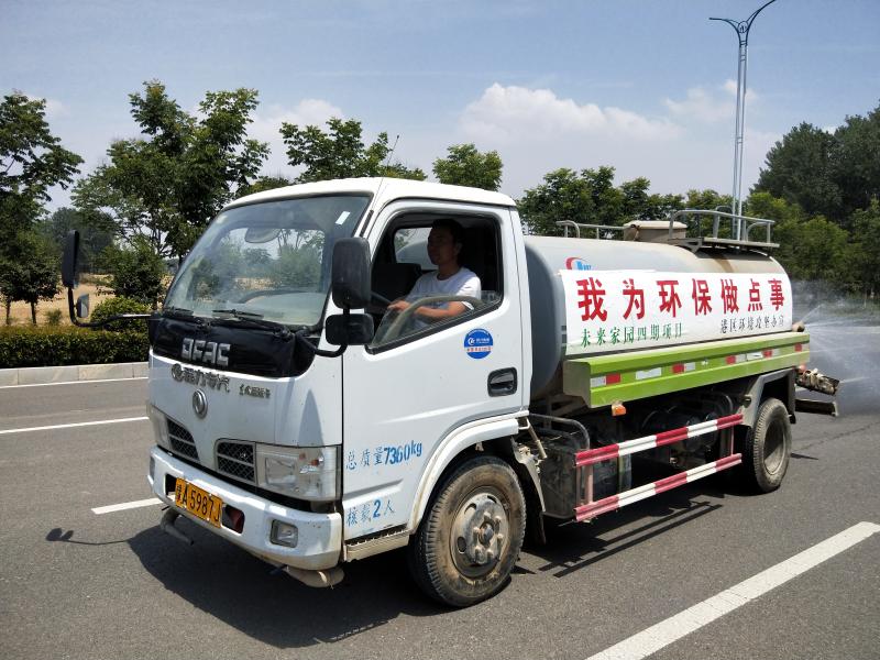 當天上午,未來家園四期工地上,灑水車司機黃玉成完成施工場地噴淋工作后,乘著給水箱加水的間隙,休息了一下,隨后駕車前往分包的平原東路進行噴灑。黃玉成告訴記者,“在做好工地日常環(huán)保灑水工作的同時,我們公司積極響應港區(qū)號召,主動做好工地周邊道路的抑塵灑水工作,根據工作安排,每天在分包的2公里路段灑水四次,為港區(qū)環(huán)保工作盡綿薄之力?!痹擁椖控撠熑藯畲毫急硎荆骸白鳛橐患沂┕挝唬軌驗楫數丨h(huán)保工作做一些力所能及的貢獻,我倍感榮幸,我代表高創(chuàng)建工股份有限公司承諾,我公司將一如既往地做好環(huán)保工作,維護好周口港區(qū)的碧水藍天?!?/p>