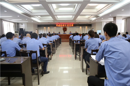 近日,項(xiàng)城市人民檢察院黨組書(shū)記、檢察長(zhǎng)周威為全院干警講“強(qiáng)化四個(gè)意識(shí),推進(jìn)機(jī)關(guān)黨建上水平”專題黨課。