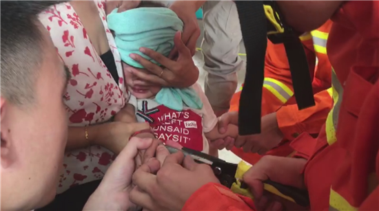 6月8日,鄲城消防救援大隊(duì)接到群眾報(bào)警稱虎崗鄉(xiāng)郭集村顧莊2歲小男孩因?yàn)樨澩媸种副讳摴芴鬃∪〔幌聛?lái),請(qǐng)求幫助。接到報(bào)警后,鄲城縣消防救援大隊(duì)立即出動(dòng)2輛消防車10名指戰(zhàn)員前往處置。