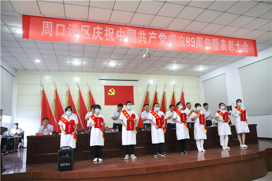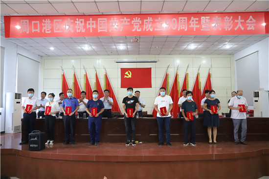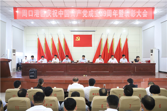 7月1日,周口港區(qū)隆重召開慶祝中國共產(chǎn)黨成立99周年暨表彰大會,慶祝黨的華誕。港區(qū)全體領導班子成員出席會議。