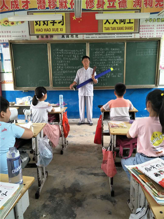 “要把這項(xiàng)優(yōu)秀的傳統(tǒng)藝術(shù)傳承下去,首先要從娃娃們熏陶開始”,這是周口市曲藝家協(xié)會副主席、太康縣曲藝家協(xié)會主席王在禮常掛著嘴邊的一句話。為慶祝黨的99歲華誕,他于6月30日,到太康縣一所小學(xué),為孩子們演唱了《學(xué)習(xí)雷鋒好榜樣》。長長的竹筒和清脆的響板,那風(fēng)情宛如少數(shù)民族的藝術(shù)味兒,他為孩子們邊表演邊講解漁鼓道情藝術(shù)的妙處,深受到孩子們的歡迎。