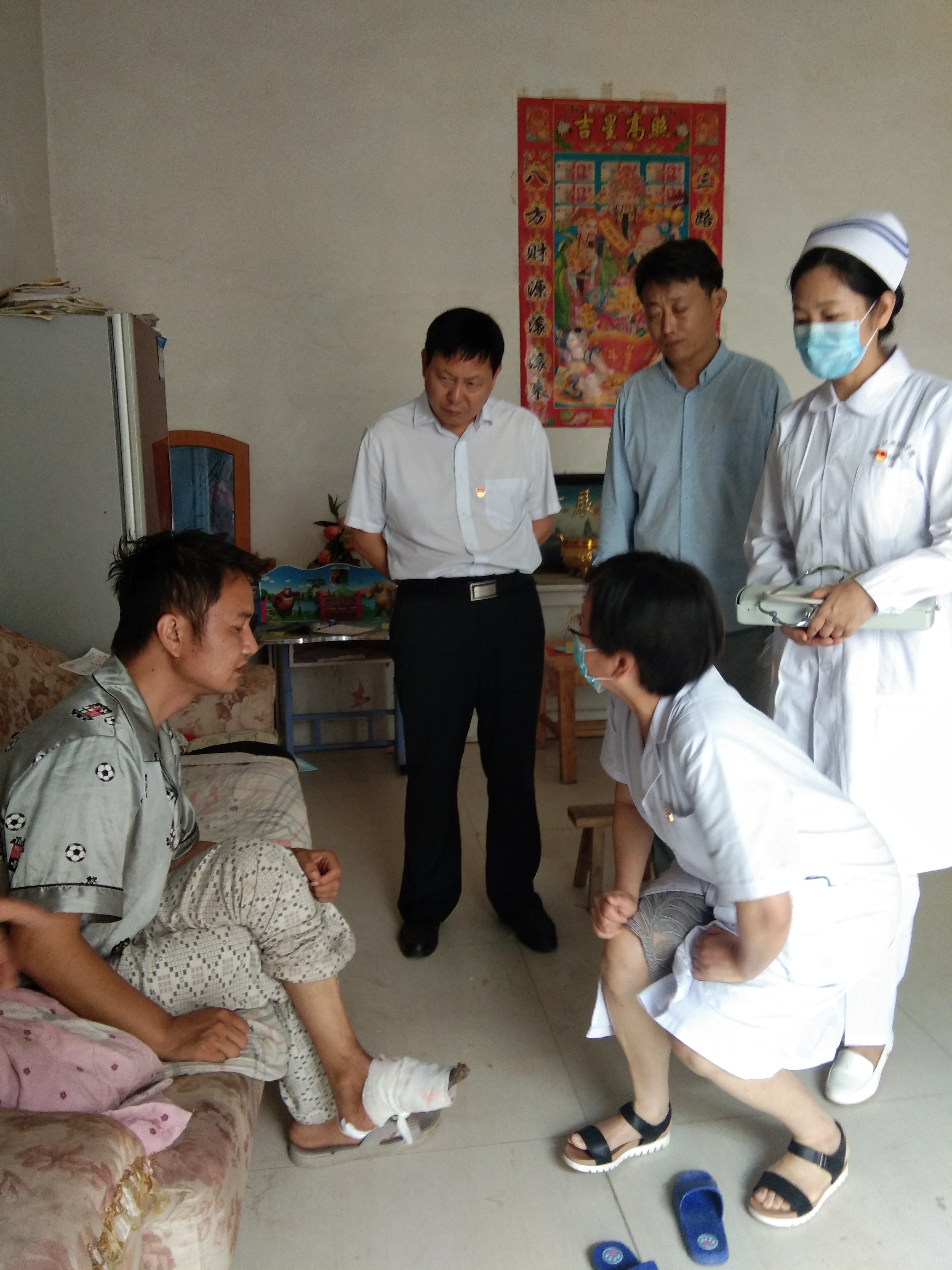 “你們這些干部都很好,如果不是你們俺這個家早就不成樣子了?!痹卺t(yī)生專家們?yōu)榇迕耋w檢、解答有關(guān)高血壓、糖尿病等的過程中,劉士欣和李清臣又帶領(lǐng)部分醫(yī)生分別到多戶貧困戶家中進行看望,了解他們的生活所需所求,現(xiàn)場為她們進行病例檢查。貧困戶孫永安患脈管炎,同時還有兩個正在讀書的孩子,為治病不但花盡了家里的積蓄,并且欠上了好多債務(wù)。在孫永安的家中,校長李清臣詳細了解了他的病情,還掏出自己口袋中的幾百元現(xiàn)金遞給他,并安慰孫永安說:“你放心,我們一定會想法治好你的病,兩個孩子的學習也不能耽誤?!碑斕?,周口職業(yè)技術(shù)學院有關(guān)人員還向村民們現(xiàn)場演示了心肺復蘇等多項常見病、多發(fā)病的急救知識。