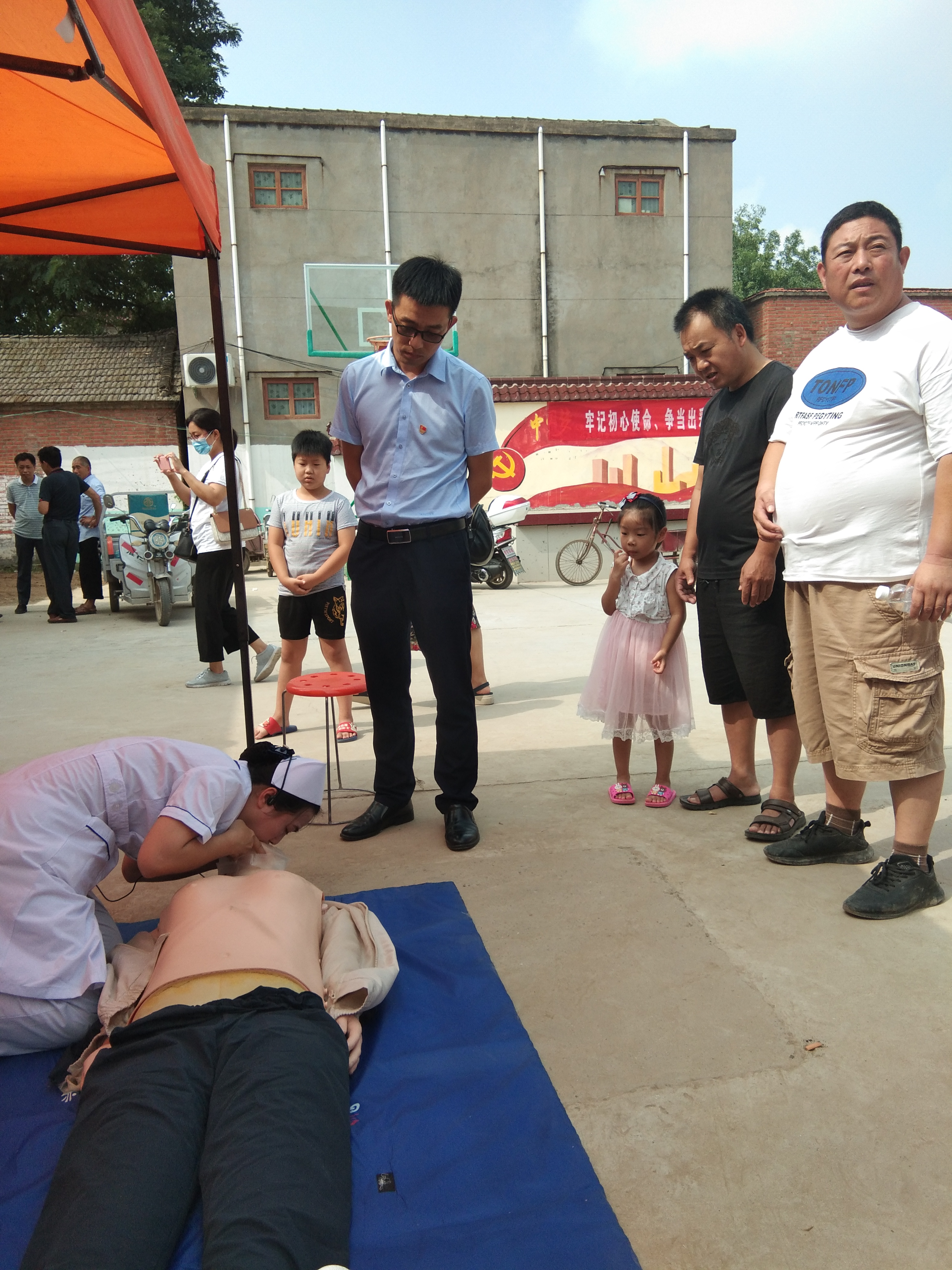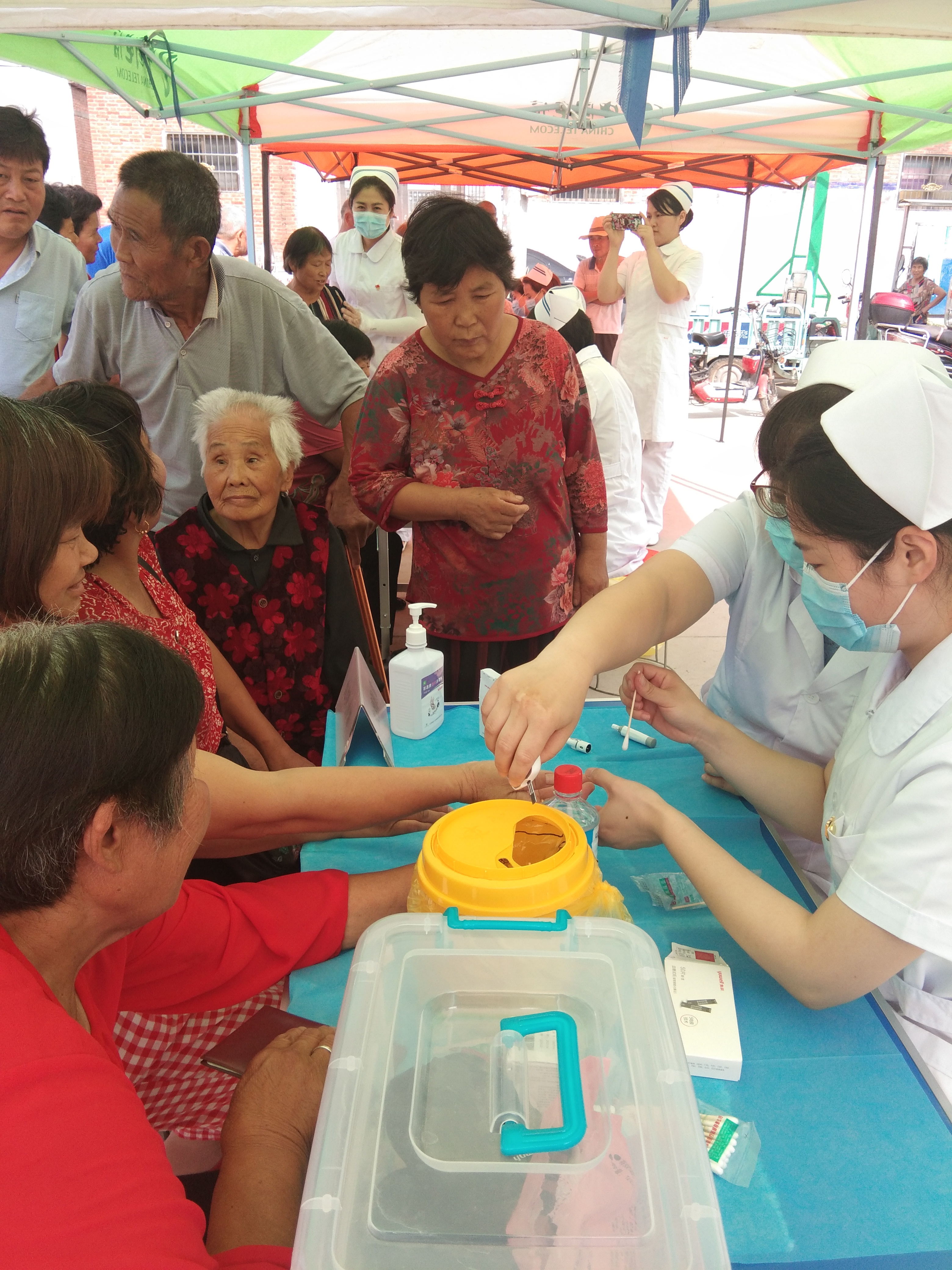 當日上午,周口職業(yè)技術(shù)學院黨委書記劉士欣、校長李清臣帶領(lǐng)護理學院的20余名心腦血管病專家和護士來到三大夫營行政村,對那里的所有村民進行健康體檢和專業(yè)知識講授。在三大夫營行政村的廣場上和臨時設(shè)置的心電圖檢測室前,村民們早早地就排起了長隊,等待專家們的體檢。8時許,剛下車的專家們就被為個水泄不通,在行政村村干部的索引下,村民們有序的在血糖檢測、心電圖檢測、血型檢測、血壓檢測等臨時搭起的檢測室前排隊等候。