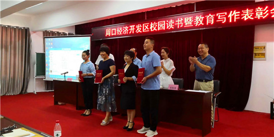7月3日,周口經(jīng)濟開發(fā)區(qū)舉行了校園讀書暨教育寫作表彰會。會議表彰了開發(fā)區(qū)實驗學(xué)校等8個“書香校園”,開來路小學(xué)二年級等18個“書香班級”、祁倩倩等30名“教師閱讀之星”,授予開發(fā)區(qū)第一小學(xué)等4個學(xué)校開發(fā)區(qū)“教育寫作先進單位”、李雅等11名教師為開發(fā)區(qū)教育系統(tǒng)“十佳作者”、張艷春等17人為開發(fā)區(qū)教育系統(tǒng)“優(yōu)秀作者”稱號。