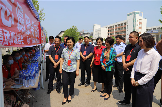 7月7日,全國高考進行時。鄲城縣為大力弘揚“奉獻、友愛、互助、進步”的志愿服務(wù)精神,由中共鄲城縣委宣傳部、共青團鄲城縣委聯(lián)合主辦,鄲城縣青年志愿者協(xié)會承辦,鄲城縣農(nóng)信社獨家贊助的愛心助考志愿服務(wù)活動在全縣6個考點順利開展,身著紅馬甲的志愿者們成為服務(wù)高考的亮麗風(fēng)景線。
