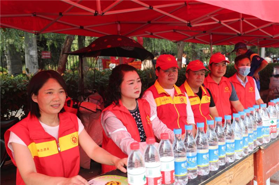 據(jù)介紹,志愿者在高考期間全程為考生和家長免費提供飲用水、防暑藥品、扇子、紙巾等愛心物資,并提供愛心送考、應(yīng)考心理咨詢、應(yīng)急救助等服務(wù);向陪考家長和周邊居民發(fā)放防疫宣傳手冊,普及防疫知識,提高市民群眾防疫意識,并做好密集陪考人群的疏導(dǎo)等工作。