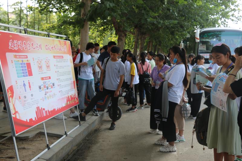 在該縣各標(biāo)準(zhǔn)化高考考點(diǎn)征兵宣傳現(xiàn)場(chǎng),人頭攢動(dòng)、熱鬧非凡?!昂媚袃?,來(lái)當(dāng)兵”大紅條幅和“把忠心獻(xiàn)給祖國(guó),把青春獻(xiàn)給軍營(yíng)”“參軍報(bào)國(guó)盡義務(wù),熱血青年競(jìng)風(fēng)采”的大型宣傳牌格外引人注目,內(nèi)容豐富的征兵宣傳展板一字排開(kāi),《征兵宣傳手冊(cè)》《大學(xué)新生應(yīng)征入伍宣傳單》《征兵政策宣傳解讀手冊(cè)》等征兵宣傳資料擺放在咨詢(xún)臺(tái)上一目了然,吸引了眾多的考生和家長(zhǎng)駐足觀看,圍著咨詢(xún)臺(tái)詢(xún)問(wèn)有關(guān)征兵事宜。