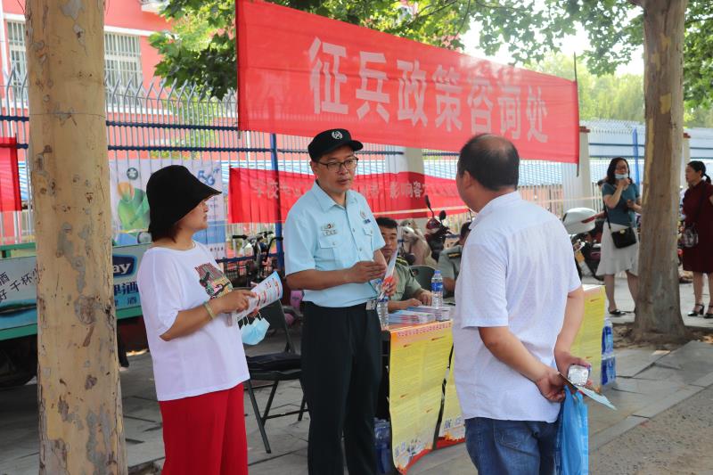 “退役后我還能繼續(xù)讀大學(xué)嗎?”“我個(gè)頭不高,能參軍嗎”……在該縣第一高中考點(diǎn),剛剛考完試走出校門(mén)的眾多考生,圍在征兵宣傳咨詢(xún)臺(tái)前,拋出一連串的問(wèn)題。現(xiàn)場(chǎng)負(fù)責(zé)宣傳的縣人武部保障科科長(zhǎng)郭松華,一邊發(fā)放征兵宣傳材料,一邊耐心解釋說(shuō):“能,退伍以后一樣能繼續(xù)讀大學(xué);參軍基本條件要滿(mǎn)足男青年身高不低于160cm,女青年不低于158cm。”“我從小就向往軍營(yíng)生活,無(wú)論今年被哪所大學(xué)錄取,我都會(huì)積極響應(yīng)祖國(guó)和軍隊(duì)號(hào)召,到火熱的軍營(yíng)去磨練,在豐富人生經(jīng)歷的同時(shí),為實(shí)現(xiàn)強(qiáng)國(guó)夢(mèng)強(qiáng)軍夢(mèng)貢獻(xiàn)積極力量。”來(lái)自該縣第三高中的考生袁向前說(shuō)。