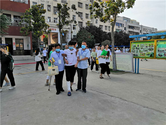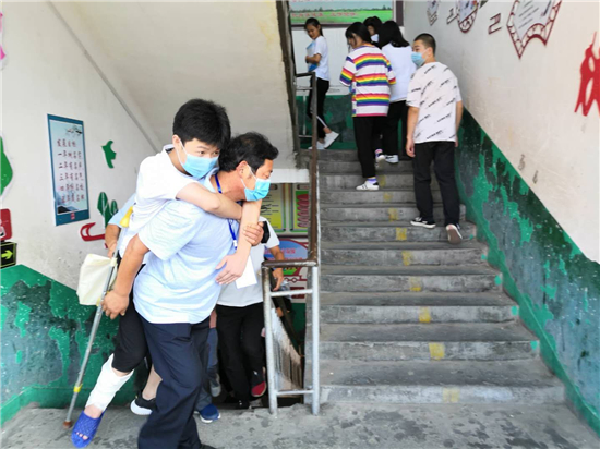“終于到了,要不是身體好,還真不能一口氣把這孩子背上三樓?!编惓强h第三實(shí)驗中學(xué)考務(wù)老師張子江邊擦汗邊笑著說。