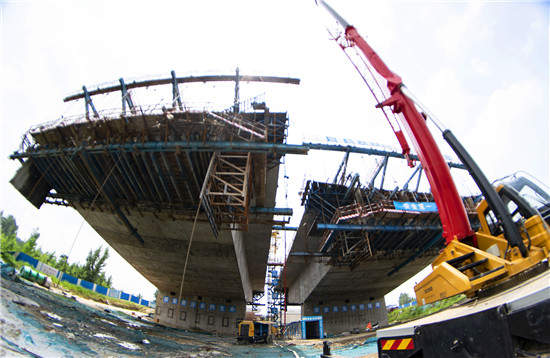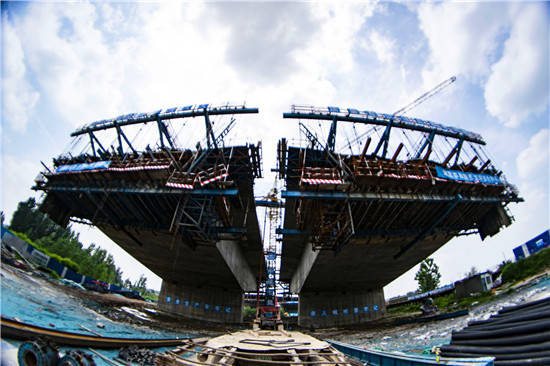 周口北環(huán)跨賈魯河大橋是我市在建重點(diǎn)工程,全長904米,其中主橋總長286米,共3跨,采用懸澆法施工。7月16日中午,記者在工地看到,經(jīng)過一年多的施工,工程完成80%左右,為了保障工期和質(zhì)量,工人們冒著酷暑,在跨河的兩列橋墩上,忙碌著澆鑄施工,隨著澆鑄橋體的延伸,預(yù)計(jì)年底橋體完成合攏。