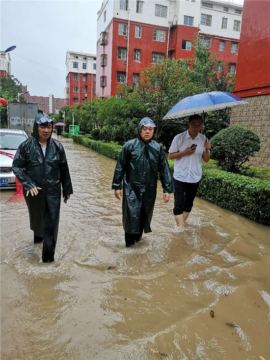 在未來家園小區(qū),孫紅偉一行涉水仔細(xì)查看小區(qū)積水情況。由于強(qiáng)降雨造成小區(qū)積水嚴(yán)重,居民出行困難,孫紅偉當(dāng)即安排李埠口鄉(xiāng)負(fù)責(zé)人盡快組織人員設(shè)備排出積水,確保群眾生命財(cái)產(chǎn)安全。