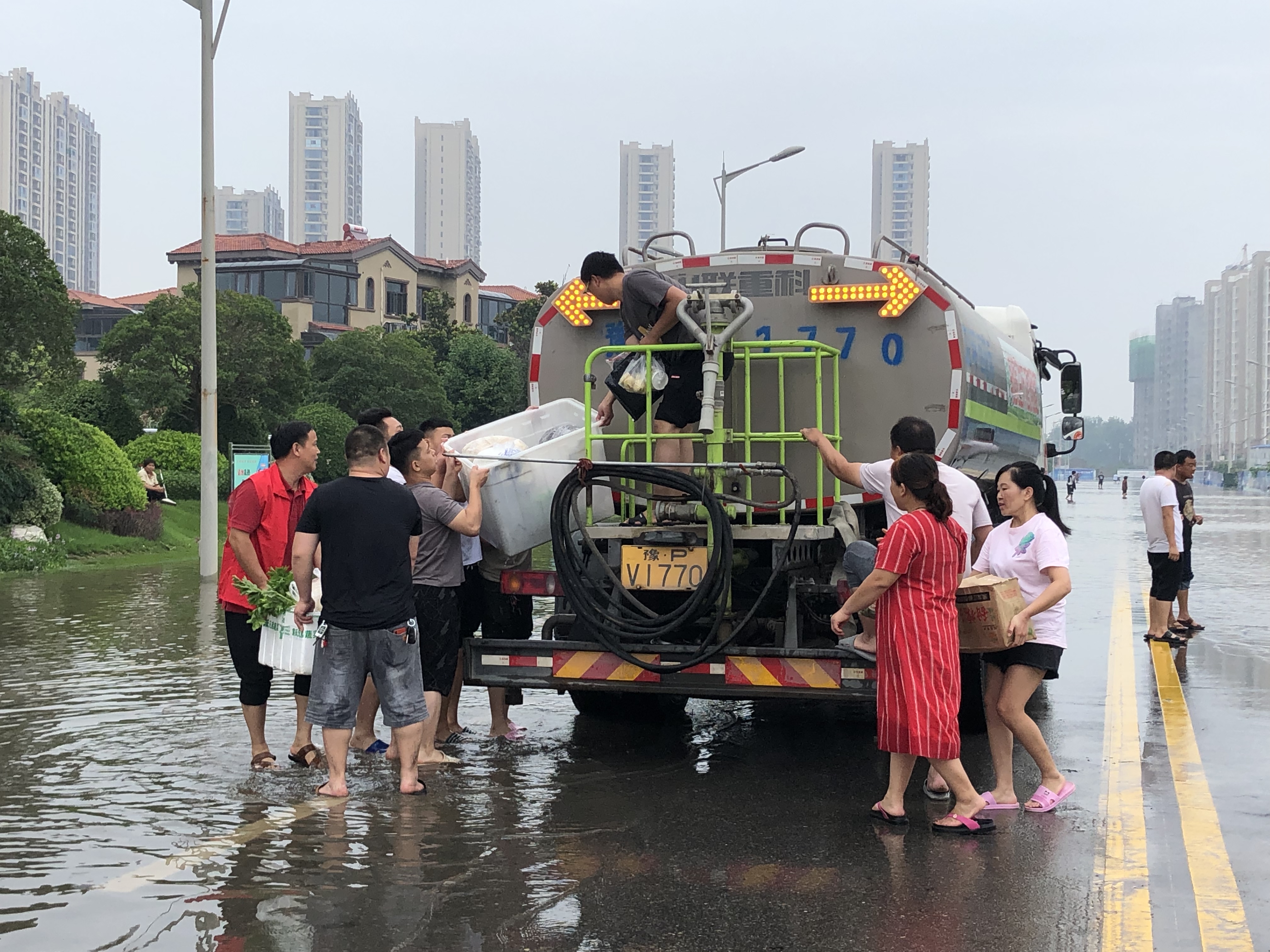 7月24日上午9時許,記者來到積水路段看到,位于周口碧桂園小區(qū)二期南側(cè)、仁和家園小區(qū)西側(cè)的桂江路東段路面,仍被大量積水覆蓋。9點(diǎn)半左右,兩輛消防車到達(dá)了現(xiàn)場,準(zhǔn)備開展排水作業(yè)。同時記者看到,現(xiàn)場還有一輛環(huán)衛(wèi)車負(fù)責(zé)運(yùn)送附近居民進(jìn)出,保障其正常生活和出行安全。