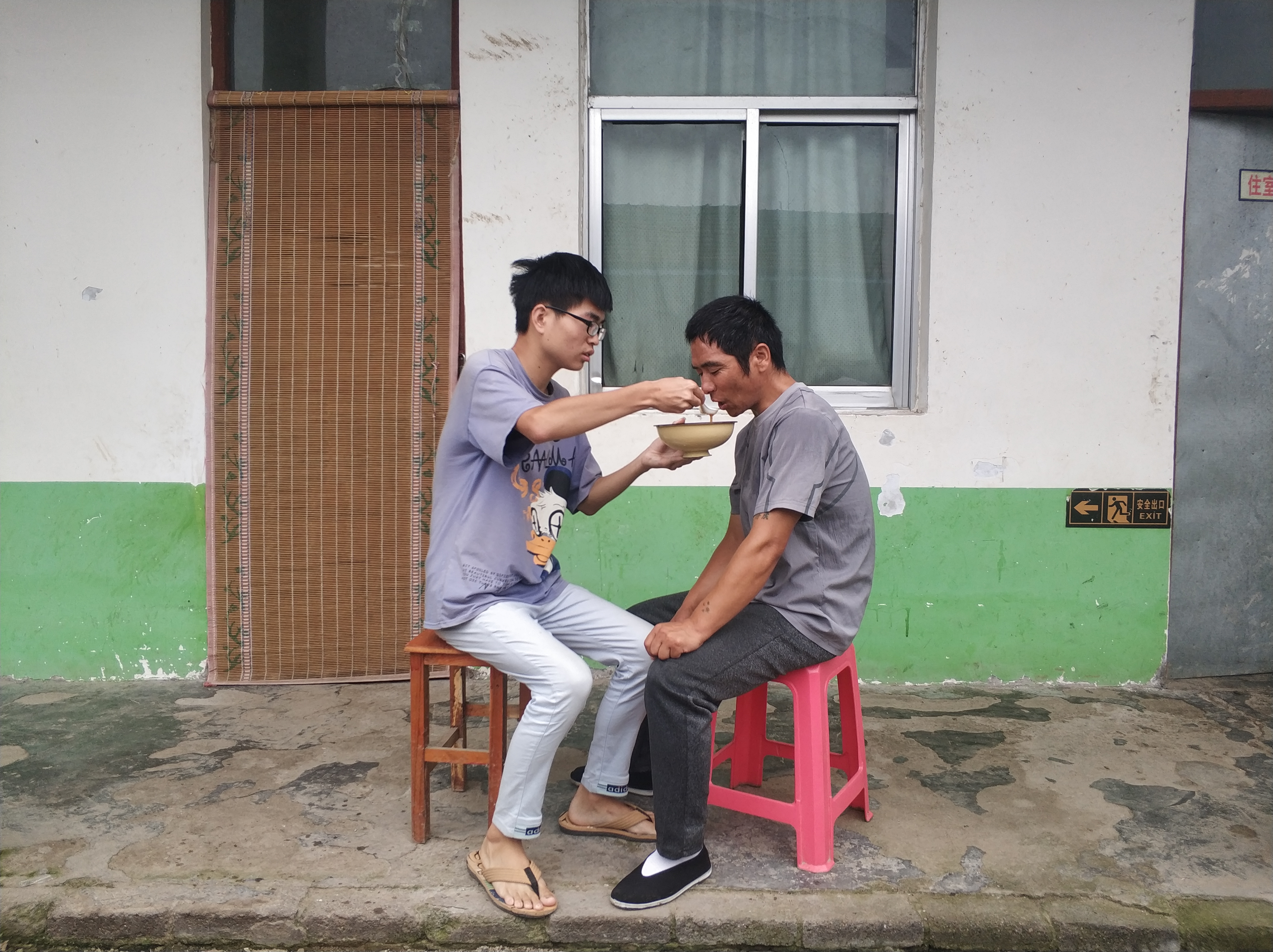 “2018年2月17日晚上,我爸突然在外暈倒,被好心鄰居送回了家,我因為年幼無知,不知是發(fā)病,沒有及時送醫(yī)院救治,耽誤了病情,導致腦部嚴重出血、水腫?!鄙廴f成回憶起往事,眼中噙滿了淚水。 當時,邵萬成正在讀初二,不得已休學,在家照顧父親。邵增做完手術(shù)后,從吃、喝、拉、撒,到穿衣、擦拭身體、肢體康復訓練等,事無巨細,邵萬成都用心地護理。日子一天天過去了,家中的積蓄逐漸耗盡,邵萬成覺得天都要塌了!