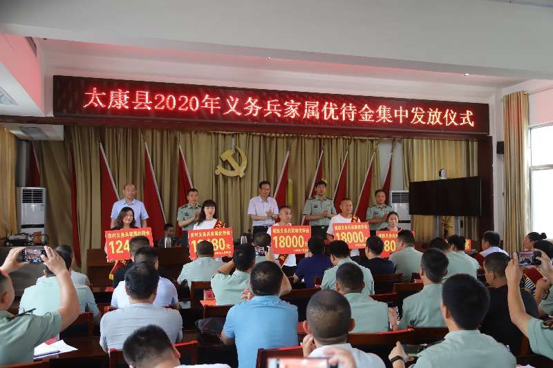 在儀式上,潘布道局長宣讀了《太康縣2020年義務(wù)兵家屬優(yōu)待金發(fā)放標(biāo)準(zhǔn)》,明確了發(fā)放對象和范圍。義務(wù)兵家長代表作了發(fā)言。據(jù)悉,此次太康縣財政出資1199萬余元用于義務(wù)兵家屬優(yōu)待金發(fā)放,按照政策標(biāo)準(zhǔn)將所有優(yōu)待金在“八一”前全部足額發(fā)放到位。舉行義務(wù)兵家屬優(yōu)待金發(fā)放儀式,不僅體現(xiàn)了太康縣委、政府對義務(wù)兵家屬的關(guān)心,而且為全縣雙擁工作增添濃墨重彩的一筆。