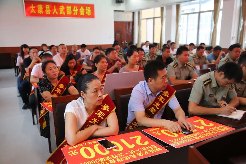為大力營造“一人參軍、全家光榮”的濃厚擁軍氛圍,激發(fā)廣大青年學(xué)子參軍報國熱情,7月30日,在八一建軍節(jié)來臨之際,太康縣在人武部國防教育中心舉行2020年義務(wù)兵家屬優(yōu)待金集中發(fā)放儀式??h委常委、縣政府副縣長韓維俊,縣人武部政委郭立君、副部長張大釗,退役軍人事務(wù)局局長潘布道以及鄉(xiāng)鎮(zhèn)武裝部長、退役軍人服務(wù)站站長和部分義務(wù)兵家屬代表參加。會議由縣委常委、人武部部長于永前主持。