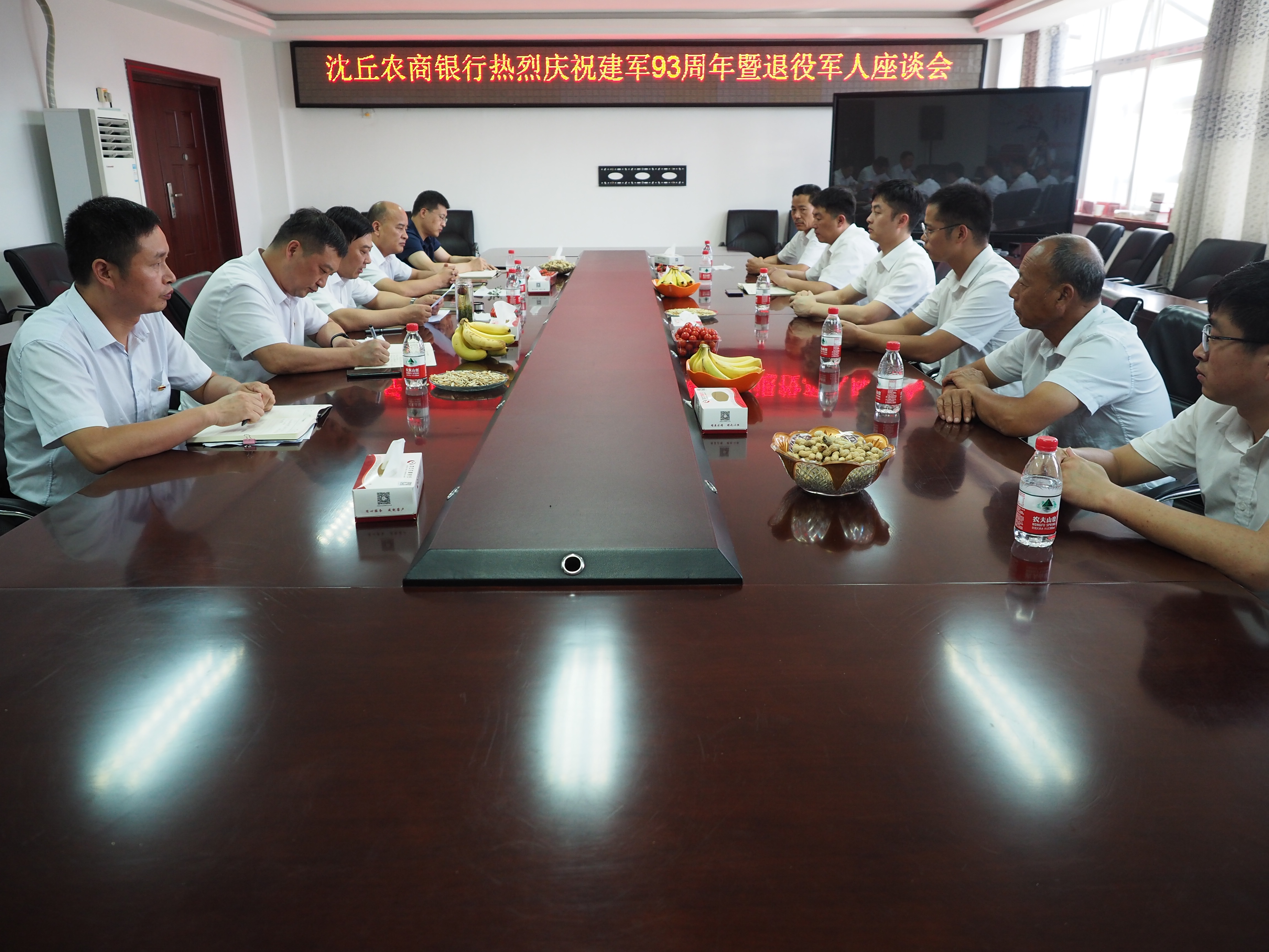 在中國(guó)人民解放軍建軍93周年即將來(lái)臨之際,7月31日下午,沈丘縣農(nóng)商銀行在總行五樓會(huì)議室召開退伍軍人座談會(huì)??傂邪嘧映蓡T和6名退伍軍人員工代表一起慶“八?一”,共憶軍營(yíng)歲月,共話發(fā)展大計(jì)。