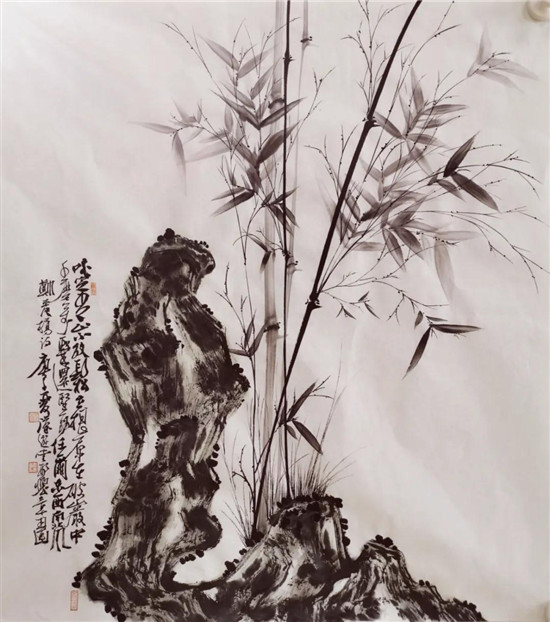 最近,懷章先生送我一幅新創(chuàng)作的竹石圖裝點(diǎn)陋室。送去琉璃廠(chǎng)裝裱做框,裱畫(huà)師傅看到這幅畫(huà),眼睛一下就亮了:這個(gè)畫(huà),真好!看落款就知道有功夫。
