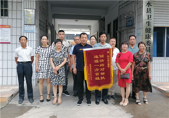 8月6日上午,商水縣衛(wèi)健委機(jī)關(guān)大門口,商水縣固墻鎮(zhèn)趙莊村黨支部書記趙西靈帶領(lǐng)村兩委班子,專程到縣衛(wèi)健委贈送一面“傾情結(jié)對幫扶 造福一方百姓”的錦旗,代表全村近兩千名村民表達(dá)對縣衛(wèi)健委的感激之情。