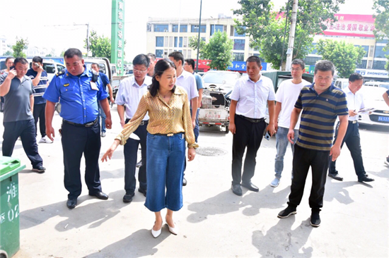 谷靜深入黃淮物流市場及沿街門店,檢查“門前三包”落實及問題整改情況。