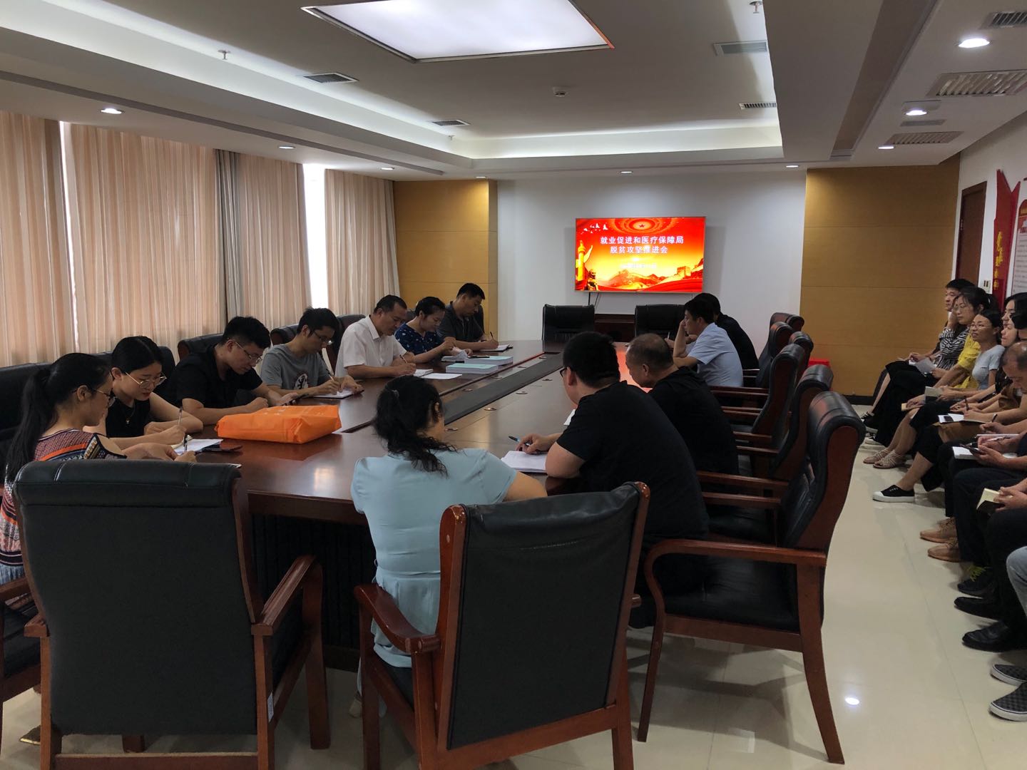 為迅速貫徹落實(shí)8月11日上午市城鄉(xiāng)一體化示范區(qū)扶貧工作會(huì)議精神,當(dāng)日下午,該區(qū)就業(yè)促進(jìn)和醫(yī)療保障局召開(kāi)全體人員會(huì)議,許灣鄉(xiāng)和搬口辦事處兩家衛(wèi)生院參會(huì)。